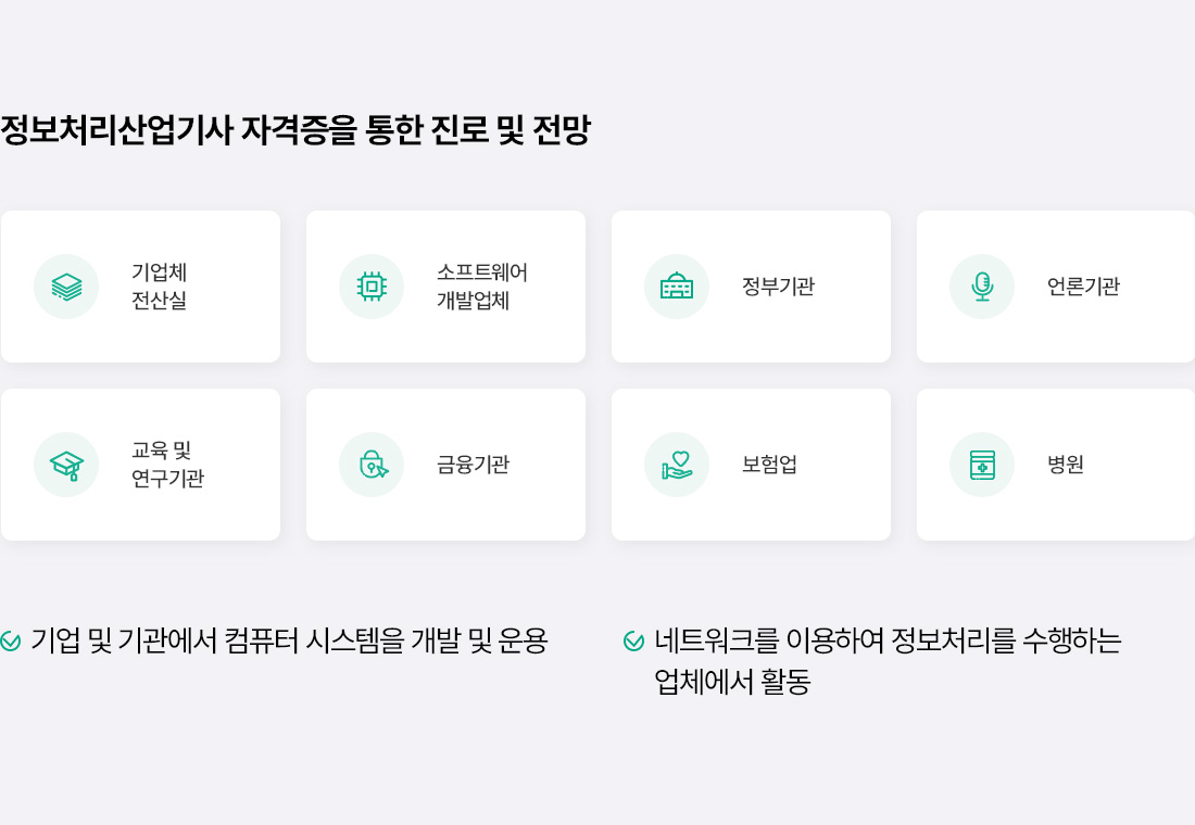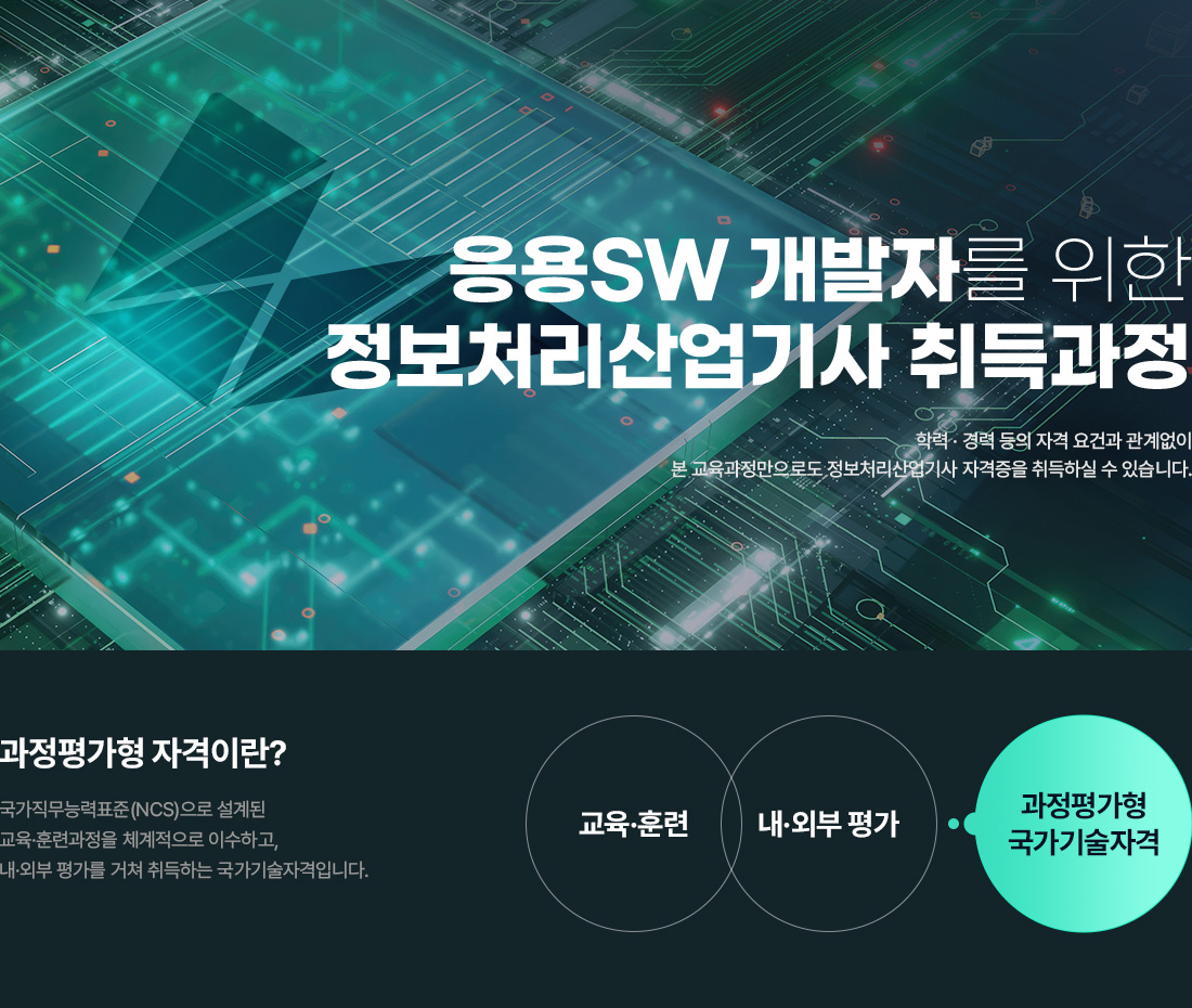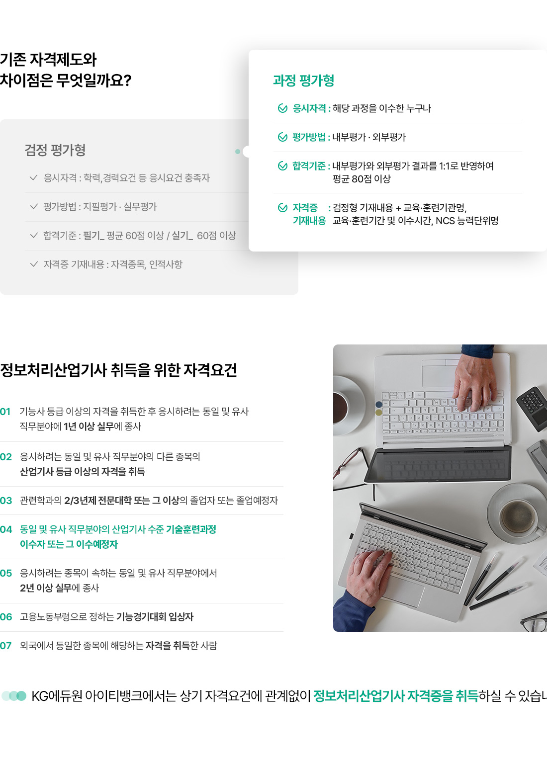 학력,경력 등의 자격 요건과 관계없이 본 교육과정만으로도 정보처리산업기사 자격증을 취득하실 수 있습니다.