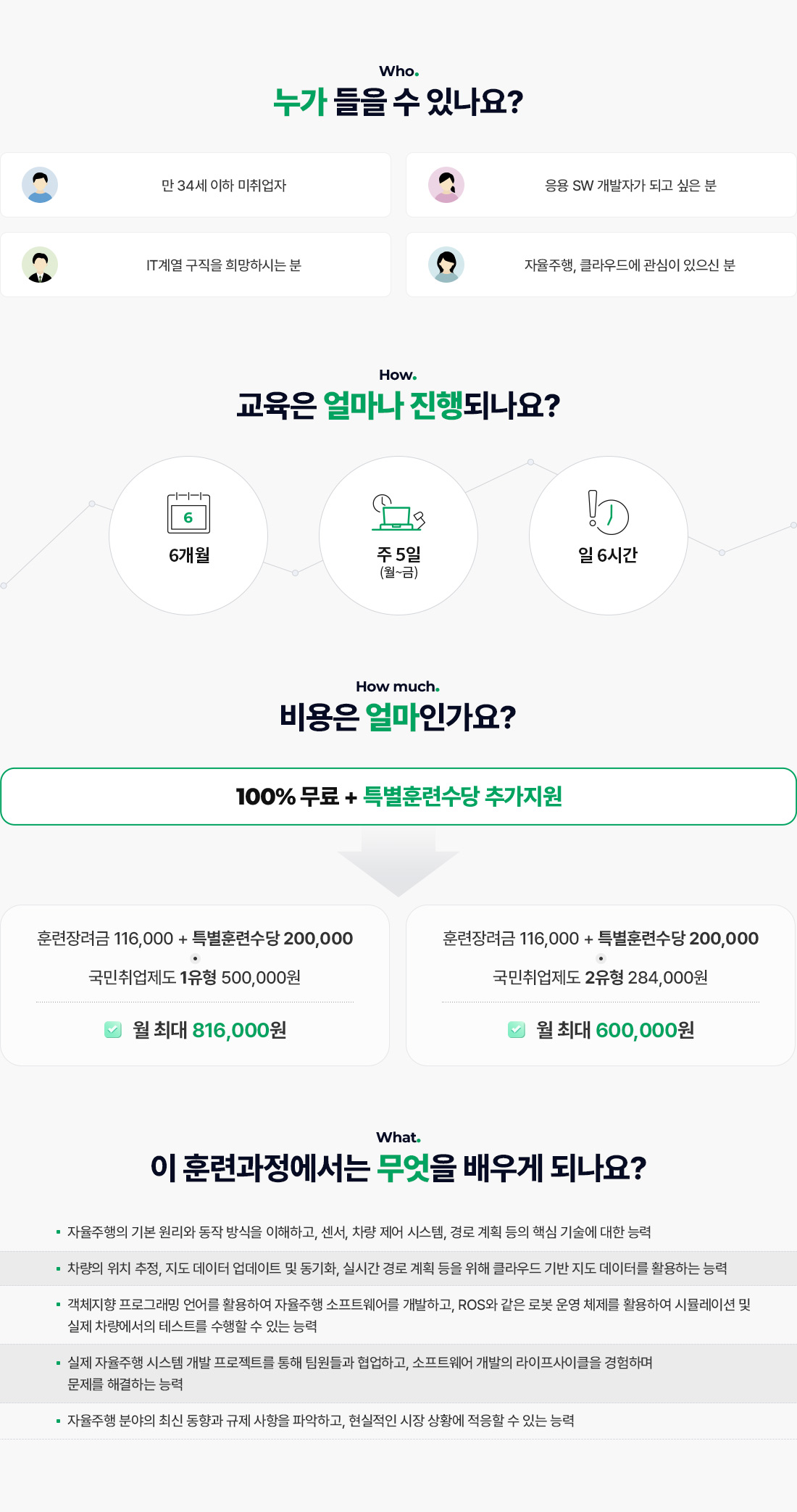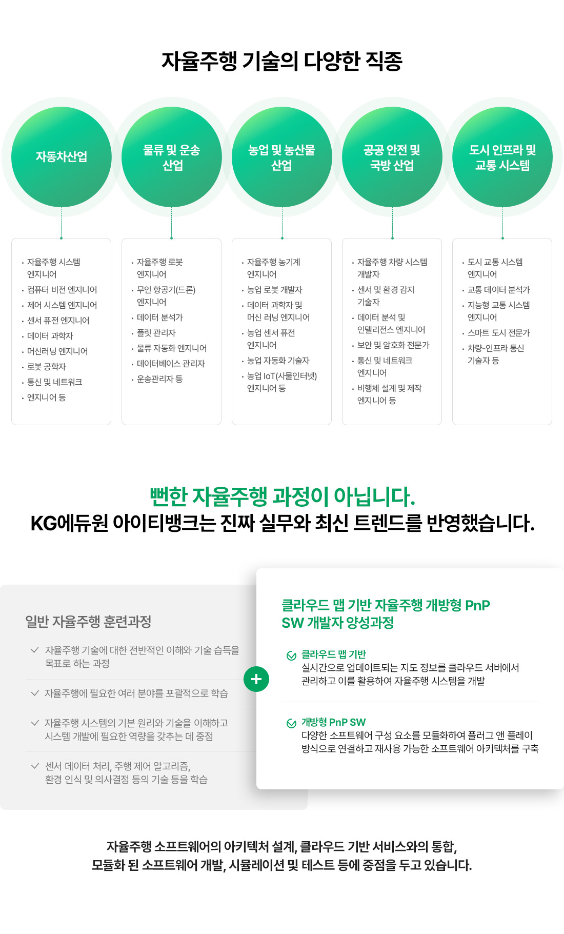 클라우드 맵 기반의 개방형 PnP(Plug and Play) 소프트웨어 시스템에 대한 전문 지식과 기술을 학습하여 자율주행 기술 분야에서 전문적인 소프트웨어 개발자가 될 수 있습니다.