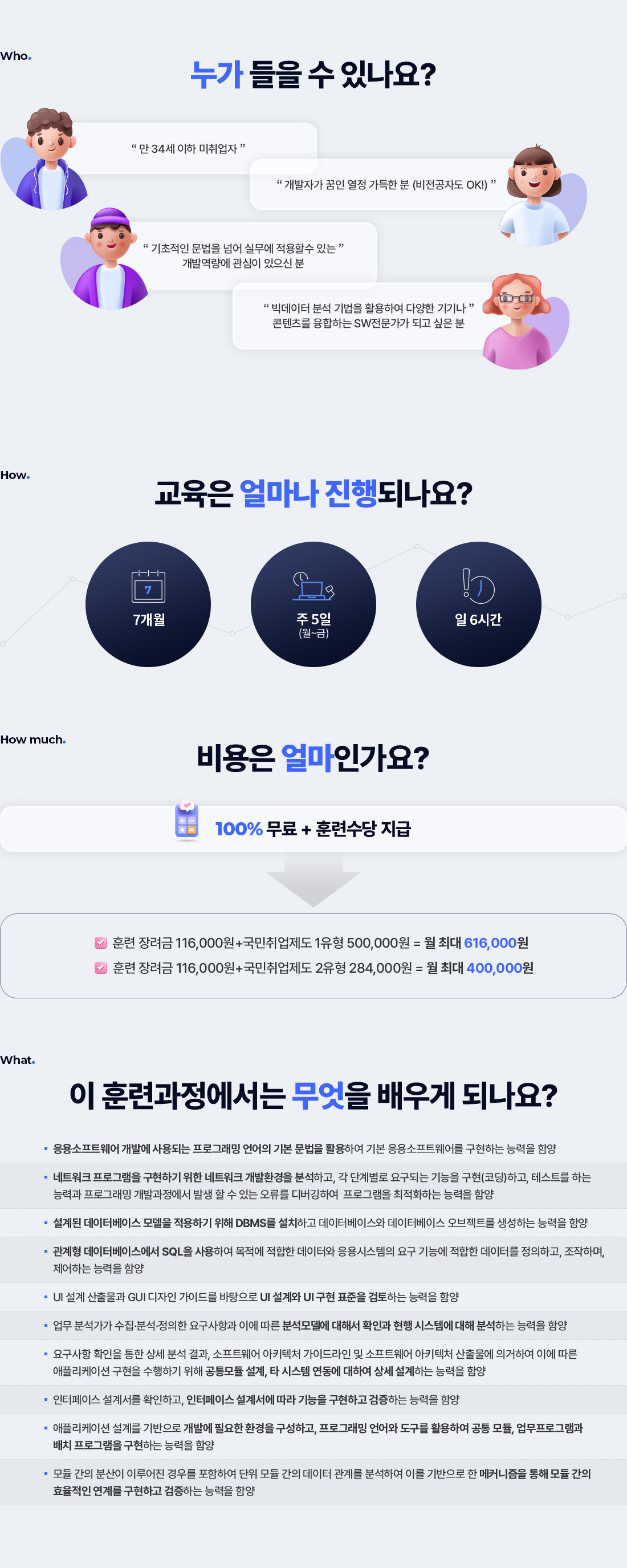 교육기간 내 회원관리, 학습설계 | 학생 이름, 성별, 이메일 주소, 휴대폰 번호 | 회원 수료 및 환불 후 6개월까지 |