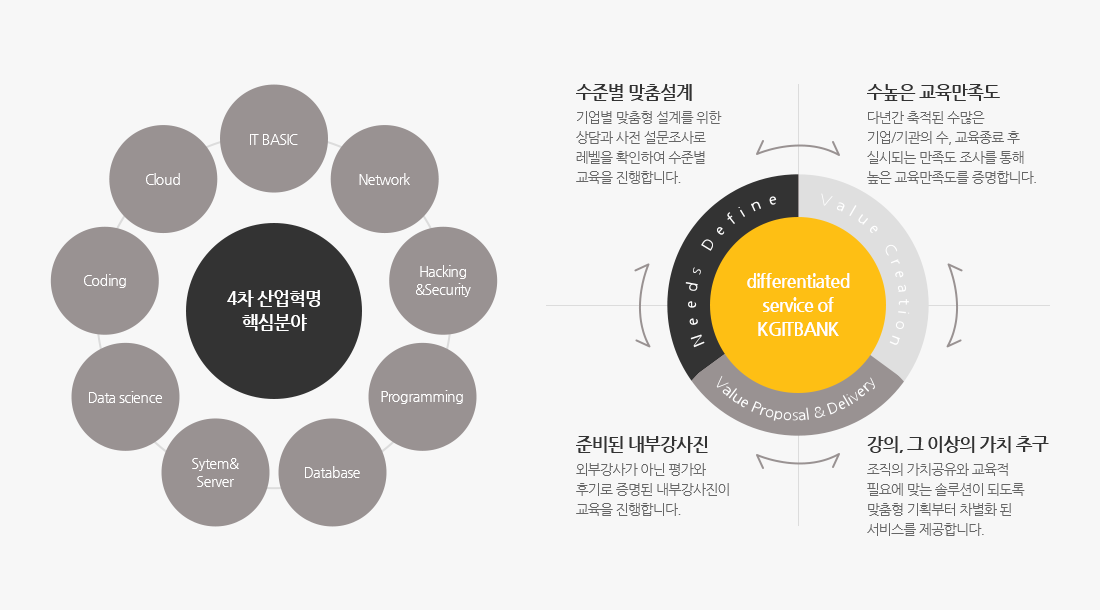 대한민국의 미래를 준비하는 교육기관이라는 마음가짐으로 최고의 맞춤형 교육을 준비하고, 기업에서 원하는 최적의 교육서비스를 제공하기 위해 항상 고민하겠습니다.