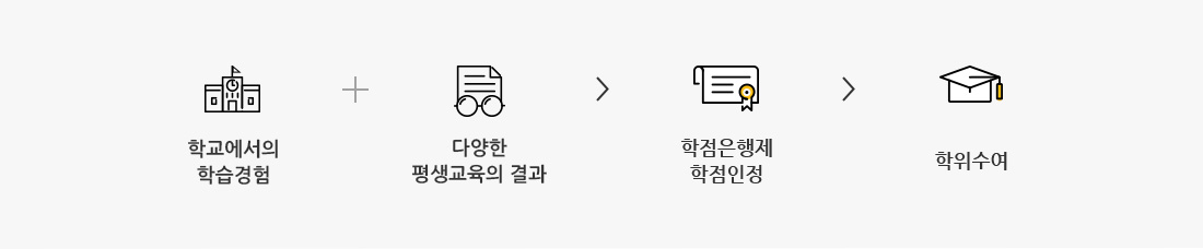 - [학점인정 등에 관한 법률]에 의거하여 학교뿐만 아니라 학교 밖에서 이루어지는 다양한 형태의 학습 및 자격을 학점으로 인정받을 수 있도록 하고, 이를 통한 학위취득을 가능하게 함으로써